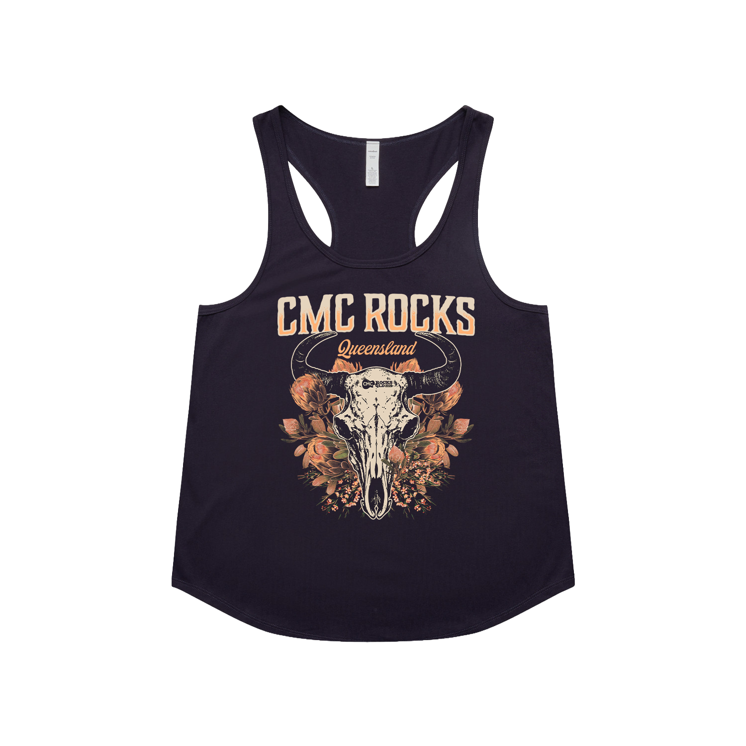 Floral Skull Ladies Navy Singlet